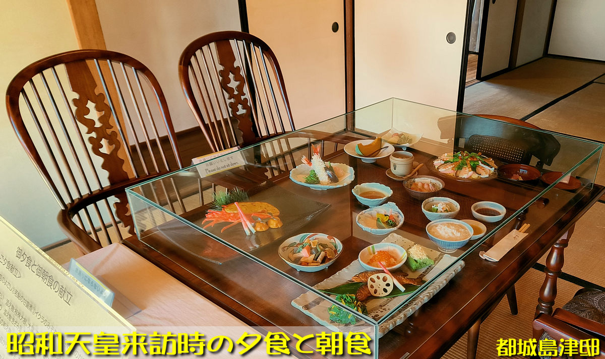 都城島津邸には昭和天皇・皇后が来訪時の朝食と夕食(ワックスモデル)の
