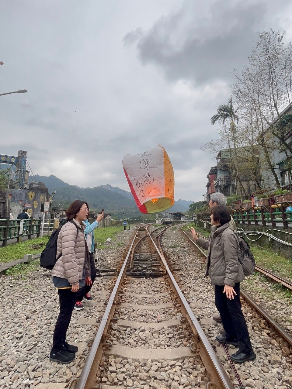 十份は、山奥の古い街並で、近年は観光に力を入れています。簡易的な熱気球に願い事を書いて空に放つことをやっていました。